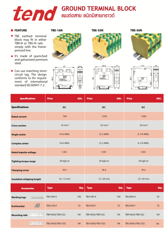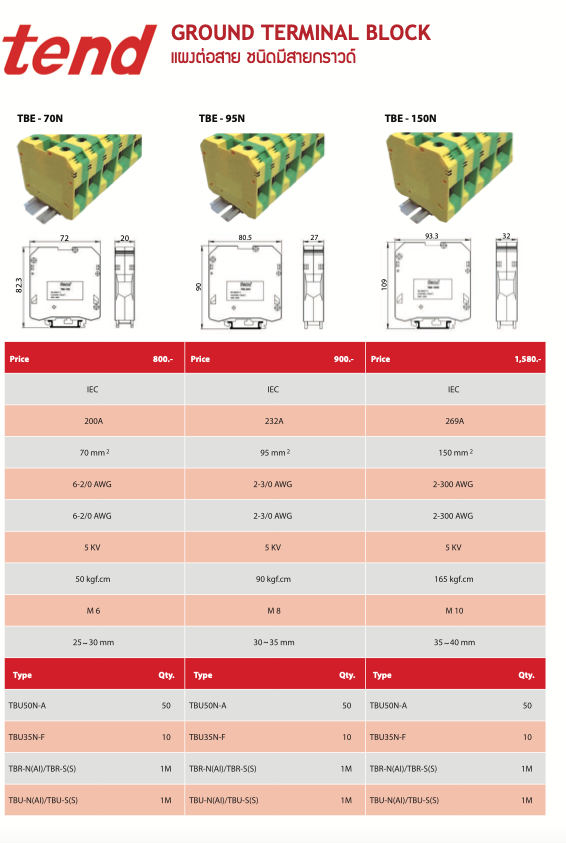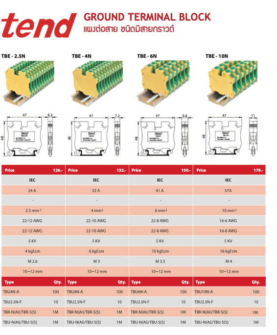 tend แผงต่อสาย ชนิดมีสายกราวด์