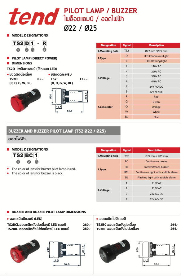 tend ไพล็อตแลมป์และออดไฟฟ้า